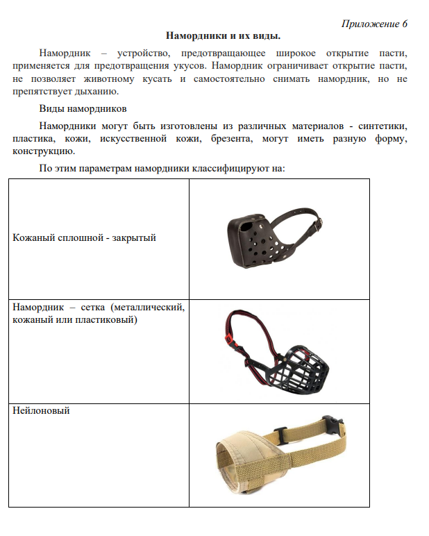 2) намордник (см. Приложение 6),
