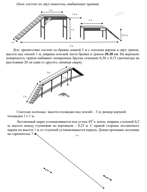 группа 1: горка высотой 160 см (140 см для собак высотой в холке ниже 42 см) и/или глухой забор высотой 150 см;