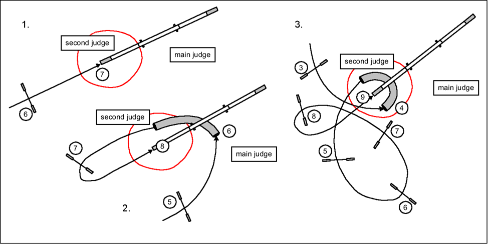 Он должен находиться у контактного препятствия с противоположной стороны от траектории движения главного судьи. Пример расположения второго судьи на входной зоне бума – Рис. 40.