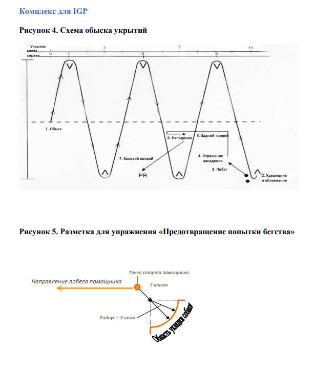 При обыске местности проводник должен двигаться вдоль воображаемой центральной линии зоны обыска. Он может ненадолго покинуть ее только для того, чтобы подойти к обозначенному собакой предмету.