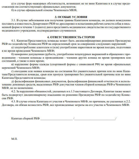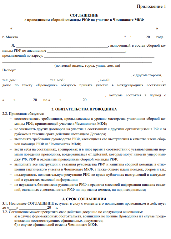 7. Договорные обязательства между РКФ и проводниками сборной команды РКФ