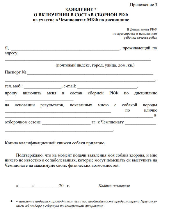 6.4. Необходимость замены собаки по причине ее болезни или смерти означает для проводника невозможность быть претендентом или членом сборной команды РКФ с данной собакой. В этом случае проводник должен быть выведен из состава сборной команды РКФ автоматически.